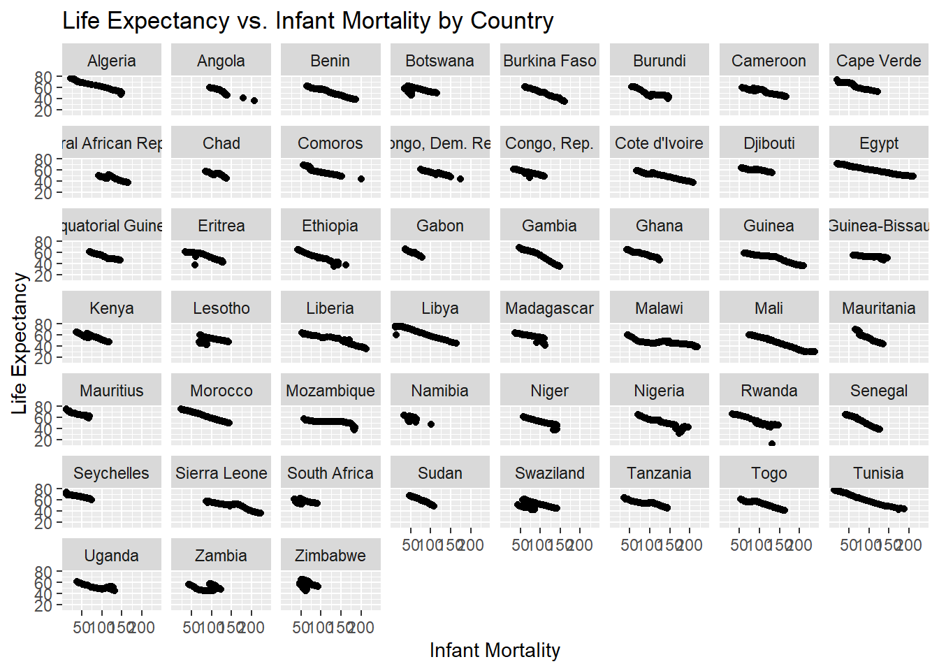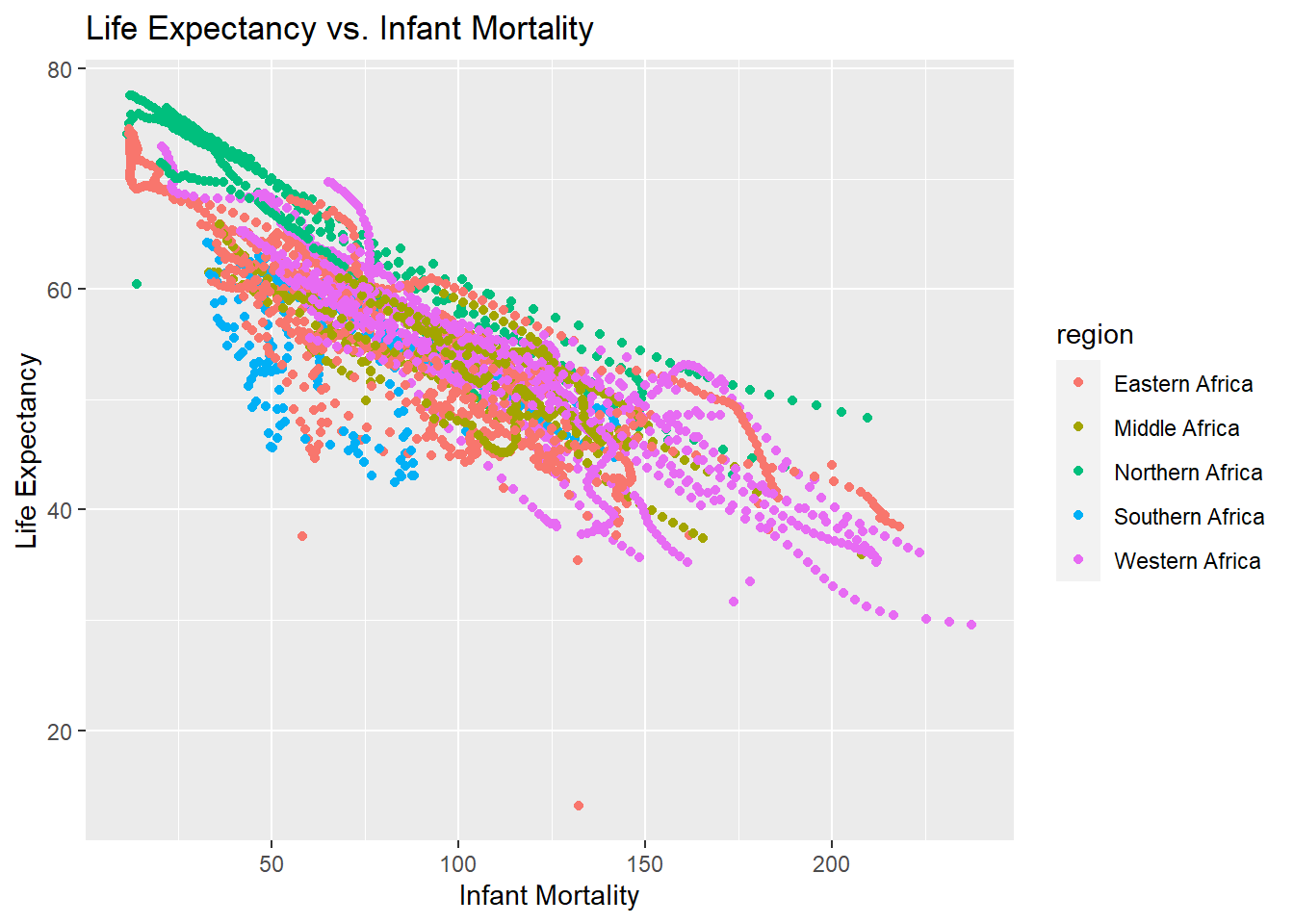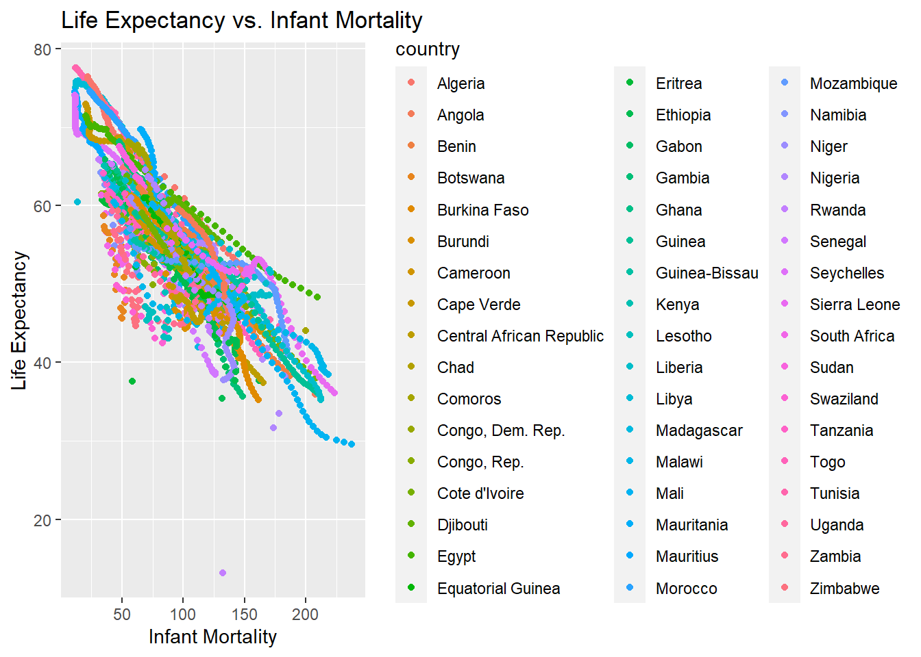 lmfit_lifevim <-lm(life_expectancy ~ infant_mortality, d4) ## Linear model from life expectancy and infant mortality in the year 2000 lmtable_lifevim <- broom::tidy(lmfit_lifevim) ## tidyverse includes the broom function to produce a table from the linear model aboveprint(lmtable_lifevim)